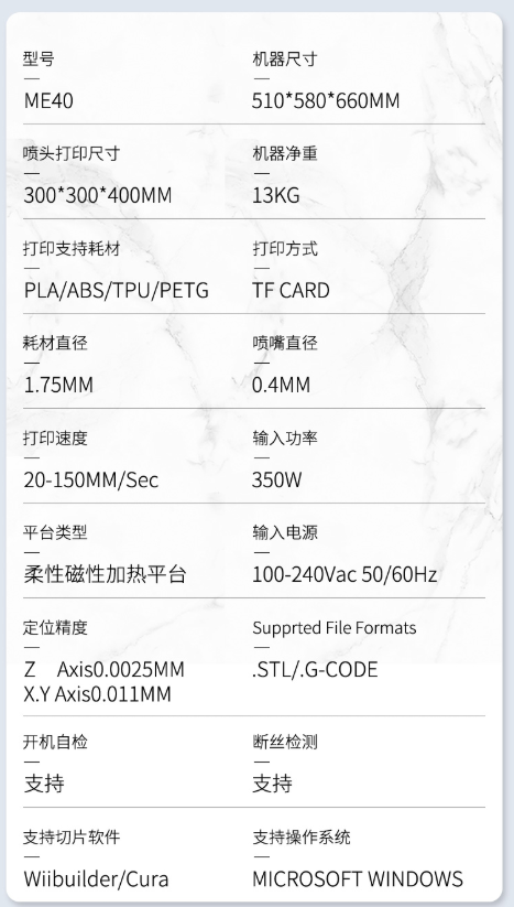 返回到 me40:产品参数